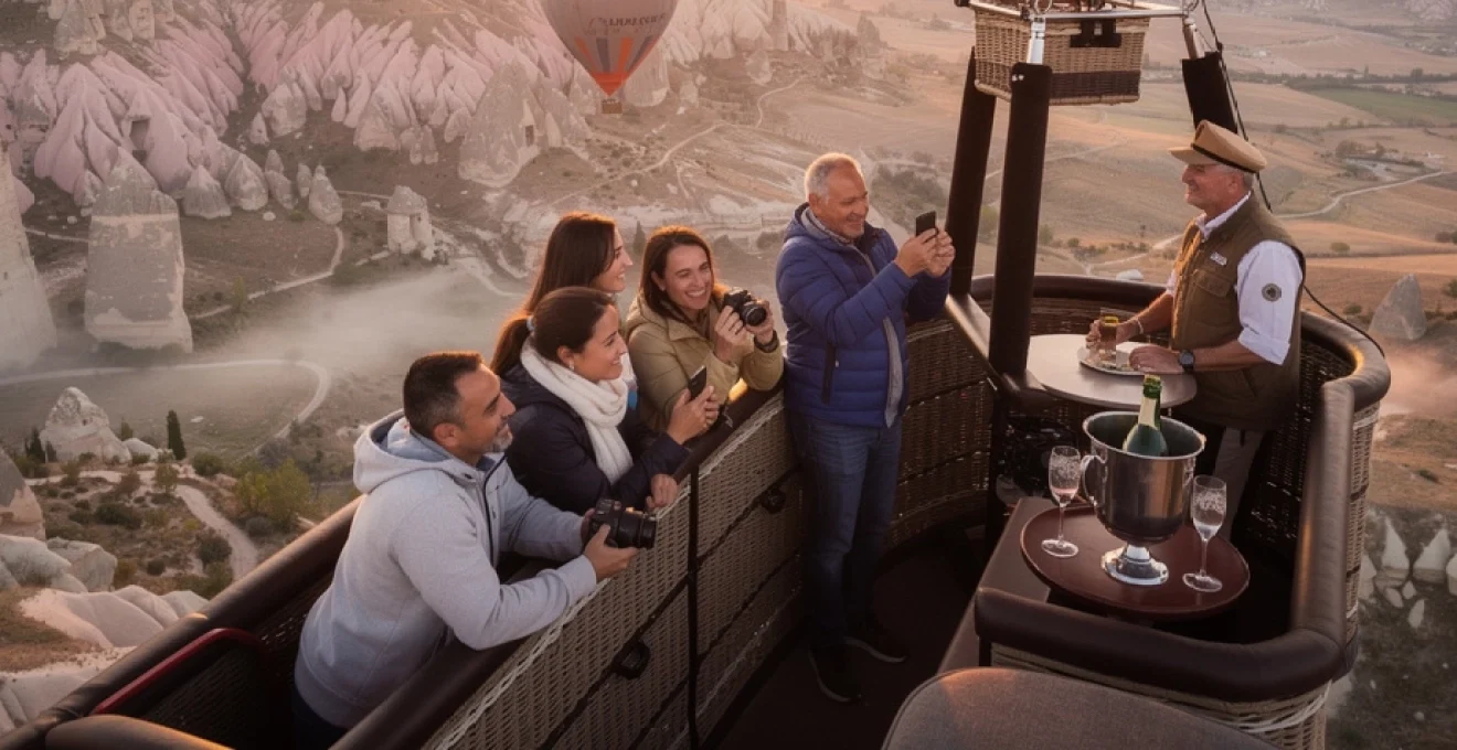 In Cappadocia, many companies personalise this tradition with local touches, such as offering Turkish delight, nuts, or small snacks alongside the drinks. Some present passengers with flight certificates or commemorative medals, noting the date, approximate altitude, and pilot’s name—a simple but meaningful keepsake of your hot air balloon ride in Cappadocia. It is also common for pilots to share brief stories about the region’s history or explain the route you just took, connecting the airborne experience with the cultural landscape below. These conversations often bridge the gap between a purely touristic activity and a deeper appreciation of local life and heritage.